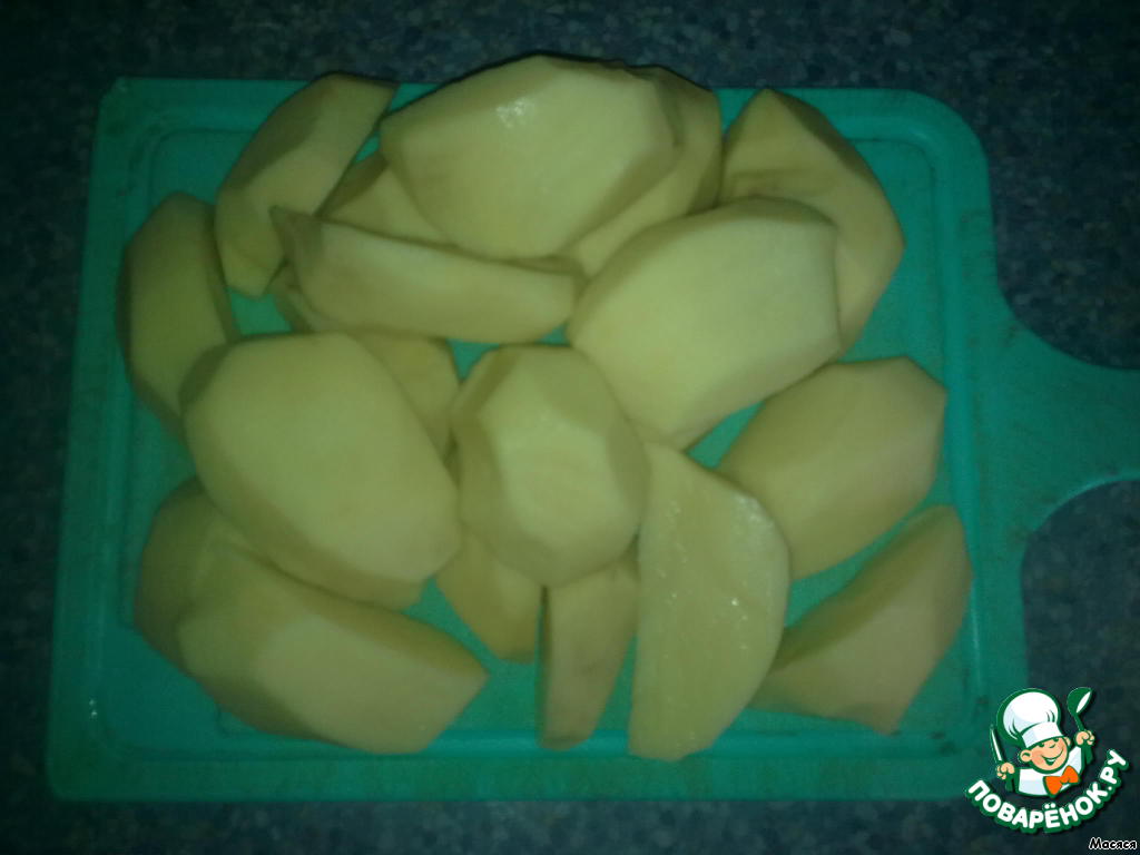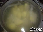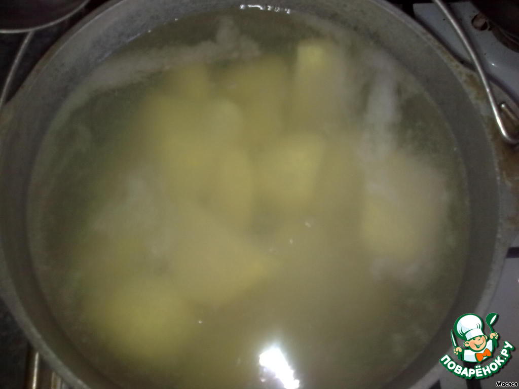 Картошку чистим, режем крупно и отвариваем. Не забываем посолить!