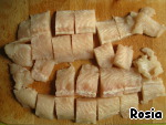 Куриное филе отварить, промыть, нарезать большими кубиками.