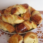 [+5]Как-то не вчиталась сразу в рецепт, запуталась с водой-молоком, поэтому делала без опары, просто сразу замесила тесто. Муки у меня ушло стаканов 6 + на присыпку стола. Пудинг брала готовый, из пакетика, ванильный. Если такого нет, легко можно заменить обычным заварным кремом. Обязательно выпекать на хорошей пергаментной бумаге.
