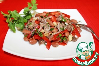 Очень сытный мясной салатик. Готовила на день рождения мужа, особенно понравился мужчинам. Рецепт из апрельского номера "Люблю готовить"