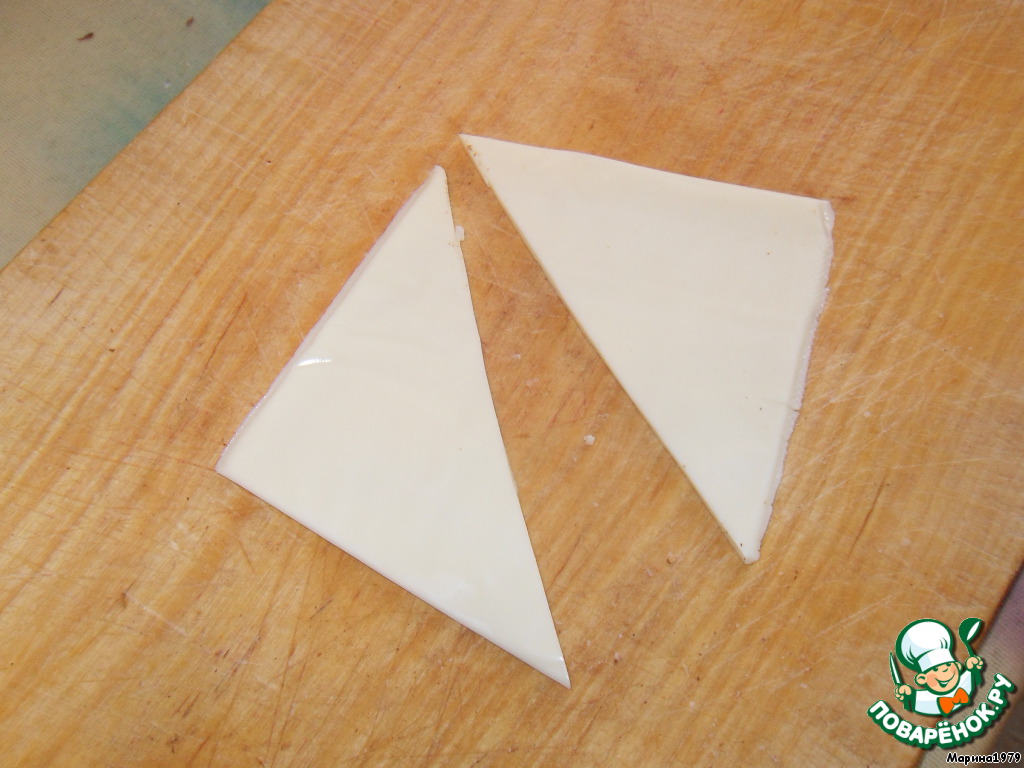 Осталось только украсить наш салат. Пластинки Виолы разрезаем на 2 треугольника