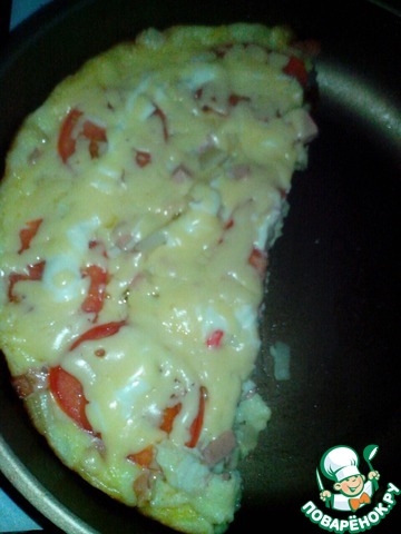 У меня сосиски, потом чуть копченой колбасы, слегка прожаренные грибы. -