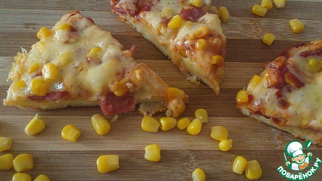 Быстрая в приготовлении и вкусная пицца. Рецепт взят из интернета.
