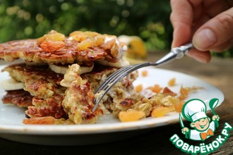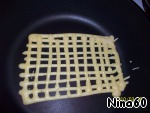 Нагреть в сковородке подсолнечное масло и наливать узором, какой получится. Пожарить с обеих сторон. Вынуть и сразу в сироп, пусть полежат в сиропе примерно 1 минутку.
