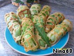 Двадцать лет назад я ездила в Новосибирск к сыну в армию на присягу. Обедали в каком-то ресторане и там мне довелось попробовать такие блинчики. Начинка была из салата. Домой вернулась с новым рецептом, а начинки делаю разные. Люблю мясо с рисом и луком, а ещe брокколи с яблоками, натeртыми соломкой.