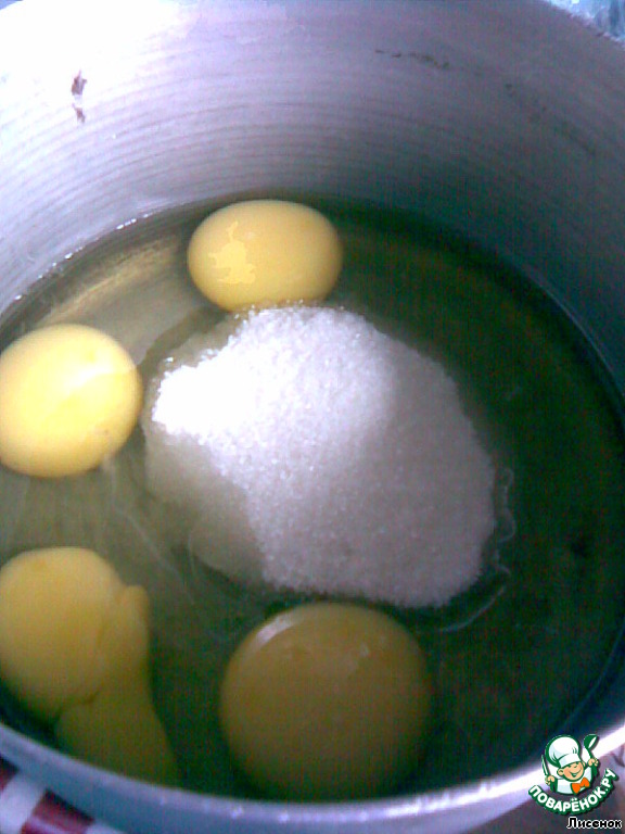 Взбить яйца с сахаром до увеличения объёма в 2-3 раза