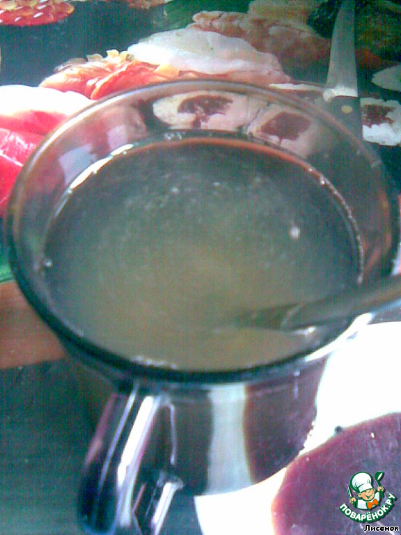 Желатин развести в 200 мл теплой воды.
