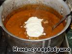 Добавить сметану. Перемешать и тушить до готовности мяса.