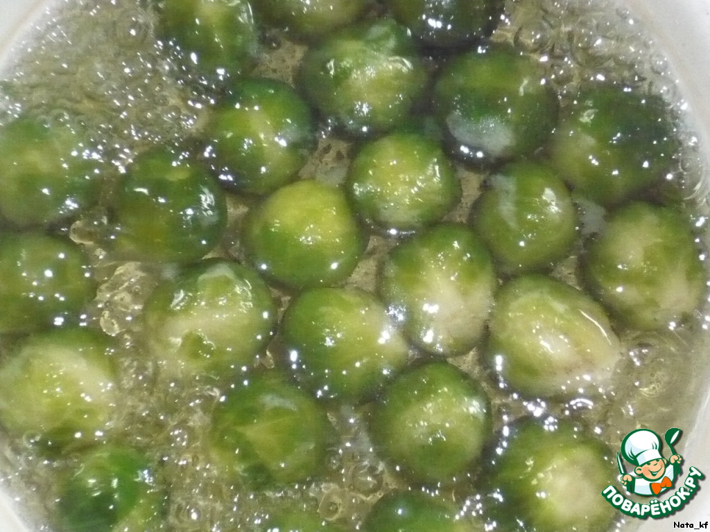 Отварить брюссельскую капусту в кипящей воде 5-7 минут.