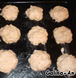 • Влажными руками формируем из теста небольшие шарики, выкладываем на смазанный противень. Я приплюснула свои колобочки вилкой и присыпала сахаром.