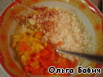Яйца взбить венчиком и перемешать с сыром тертым на терке, добавить порезанные перцы, специи