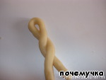 Отщипываем он него кусочек и скатываем шарик размером с небольшой мандарин, затем раскатываем его в жгутик и заворачиваем примерно так.