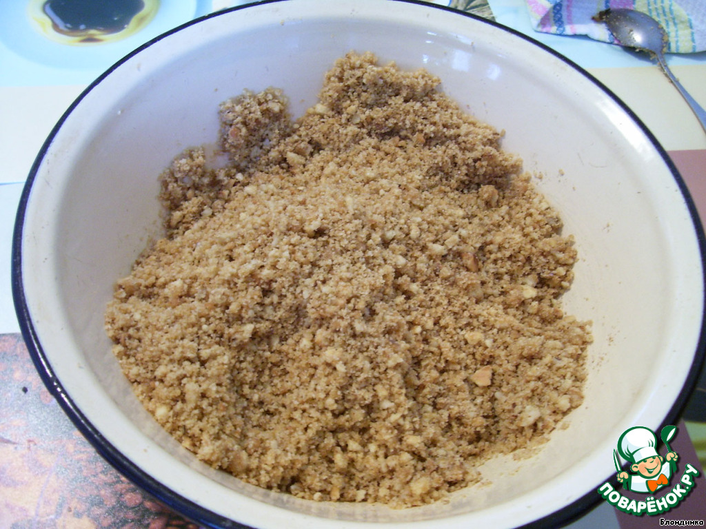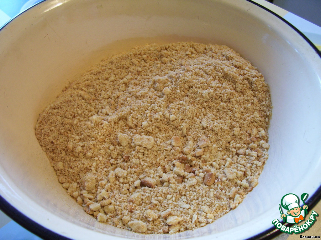 Для основы измельчаем печенье в крошку (самое обычное, у меня было «К чаю»)