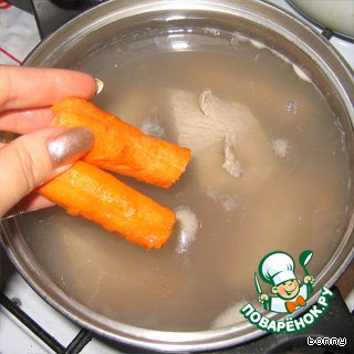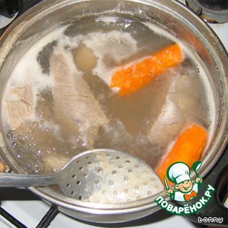 Можно сварить не мякоть, а мясо на косточке, на бульон, из бульона суп - из мяса - второе. Если готовим только второе, возьмите воды минимально, чтобы отварить мясо. Так оно меньше отдаст вкус. Закладывайте мясо к кипящую воду.