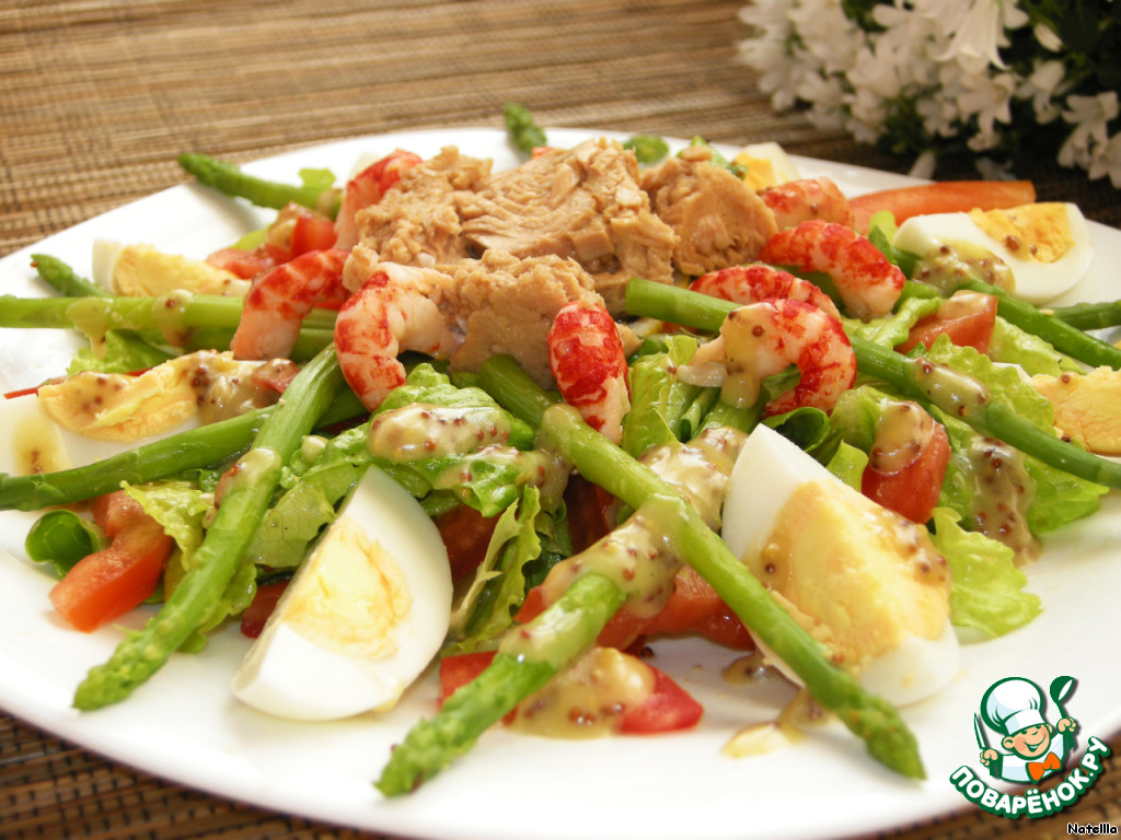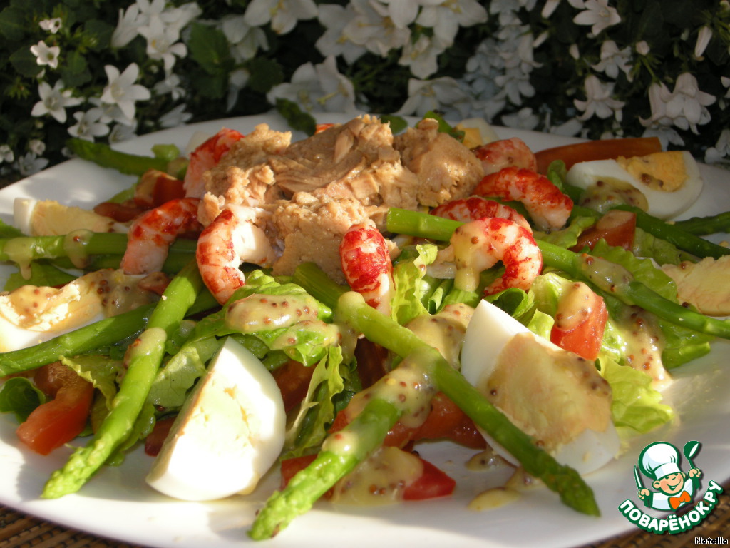 Рецепт «Салат с мини-спаржей, раковыми шейками и тунцом»: