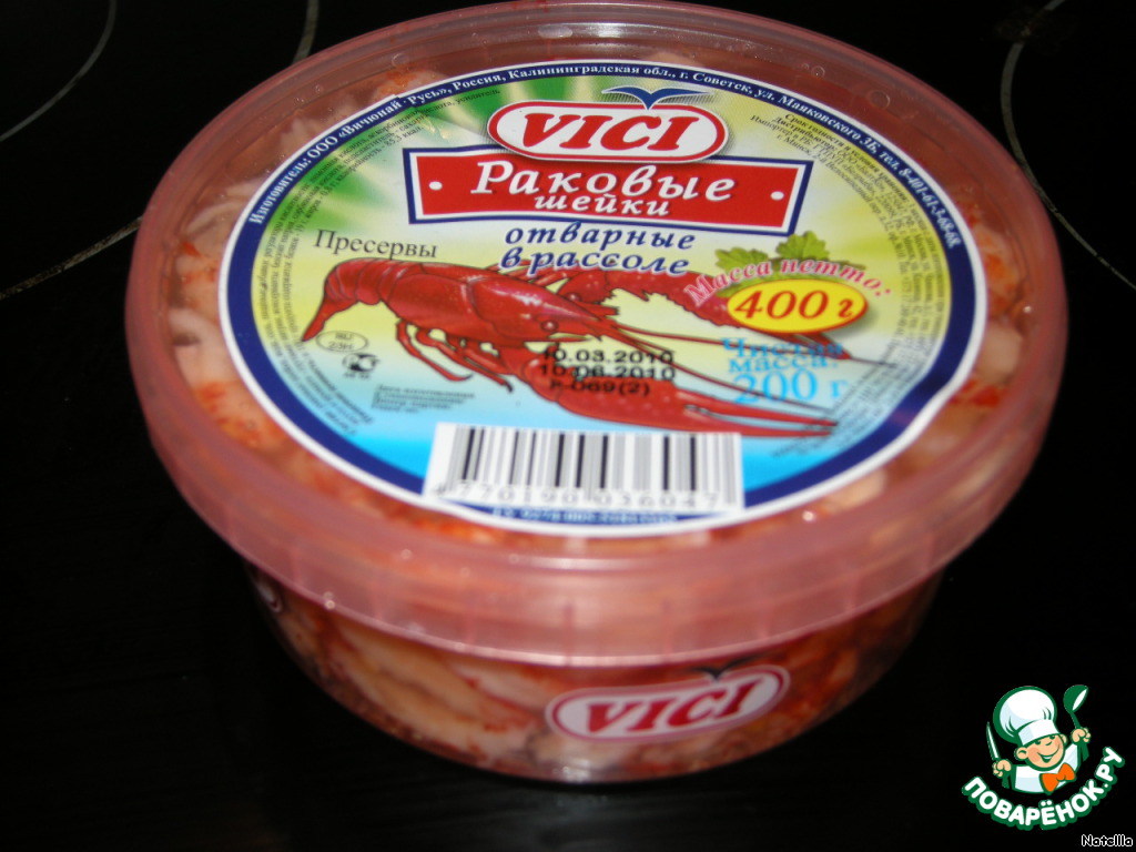 - Морепродукты (раковые шейки в рассоле) — 50 г