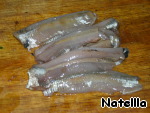 Подрезаем наискосок и бланшируем минут 5 в подсоленной воде.