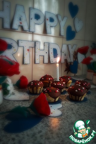 Разложить тесто в формочки до 2/3 объема, т. к. при выпекании выпечка будет подниматься.