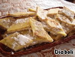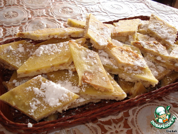 Остывший пласт нарежьте ромбами и подайте на стол. Сверху можно посыпать сахарной пудрой.