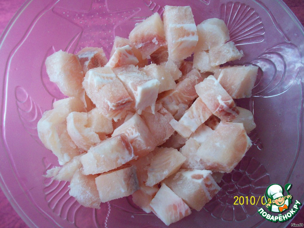 Нарезать филе рыбы на кусочки. У меня пангасиус.