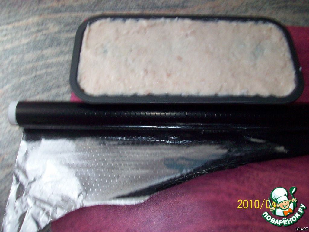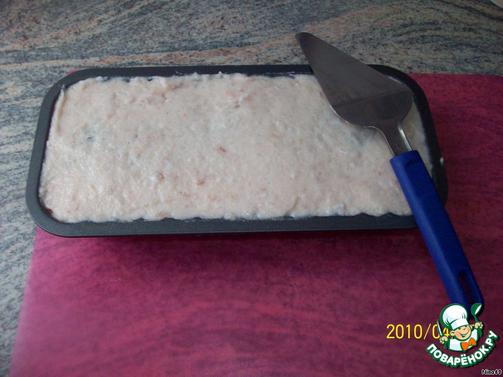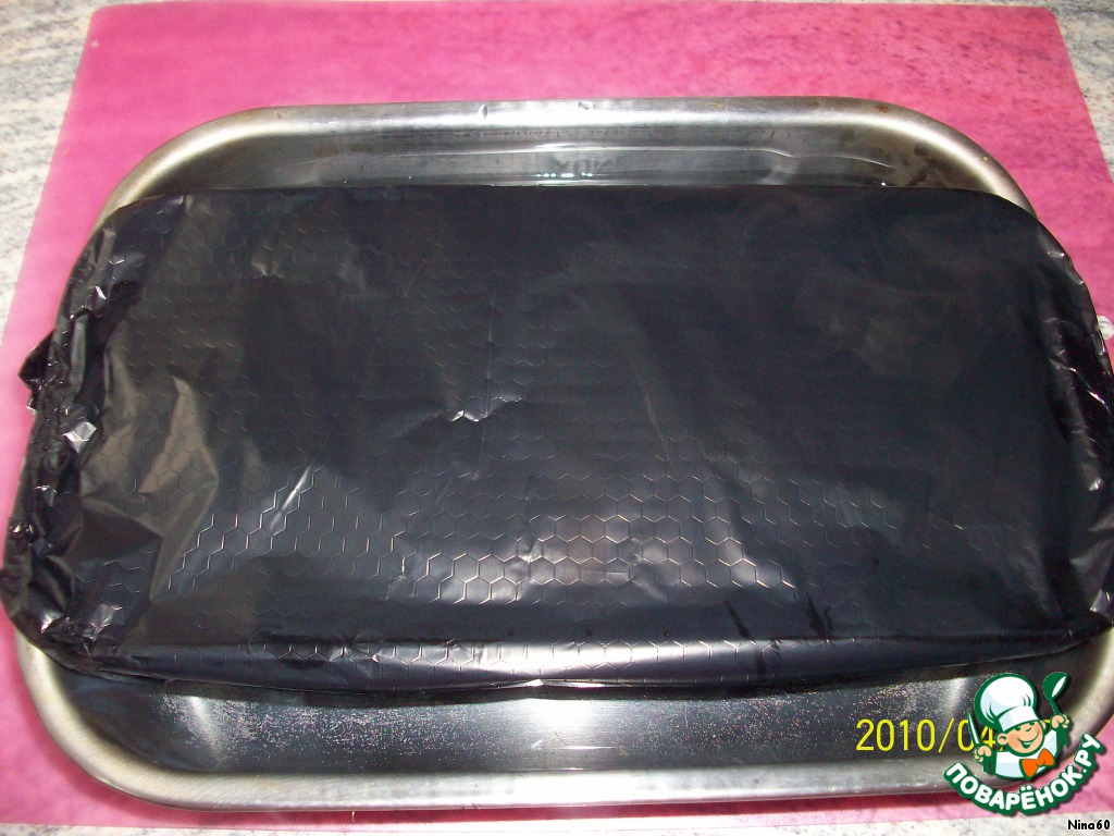 Поставить формочку в лоток с горячей водой и поставить в духовку: