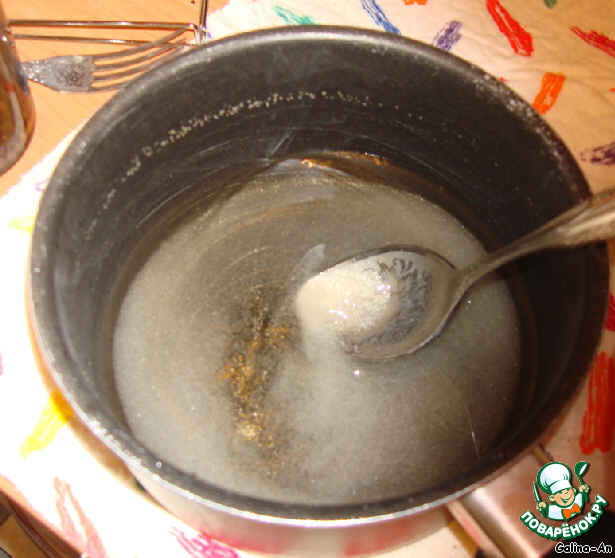 Приготовим сироп: стакан сахара растворим в 0,5 стак. воды. Поставим на плиту и будем варить минут 10, постоянно помешивая, пока сироп слегка не загустеет |