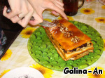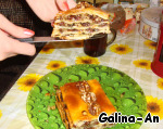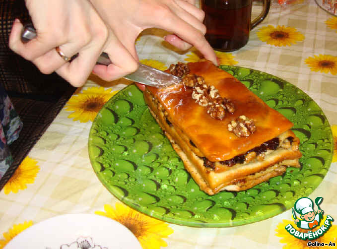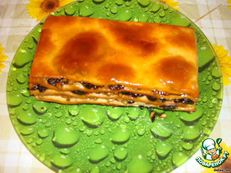 Смотрим предыдущий шаг и повторяем один в один до тех пор, пока не израсходуем всё тесто и начинку. Каждый слой (и верхний в том числе) не забываем промасливать.