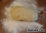 Достала тесто, выложила на присыпанную мукой рабочую поверхность, обмяла |