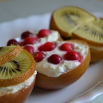 в другие половинки - положить кусочки киви -