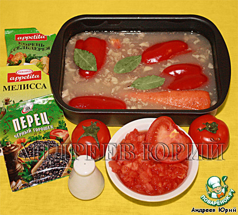 - Приправа (сушеные травы и коренья - корень сельдерея, розмарин, петрушка, мелисса, гвоздика)