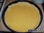 Взять чуть больше половины теста, выложить его в смазанную форму, заходя на борта. Положить сверху лимонную начинку. |