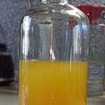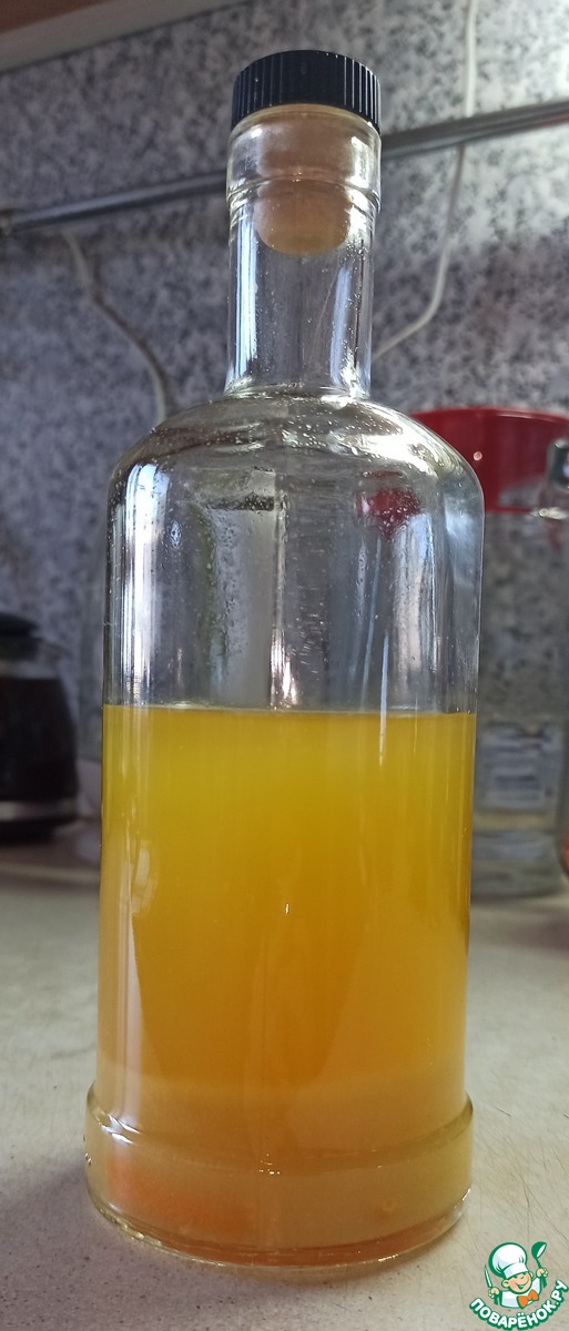 В бутылку наливаем яблочный уксус, сок лимона и добавляем цедру.
