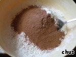 муку смешать с крахмалом, разрыхлителем и какао - подмешать к желтковой массе
