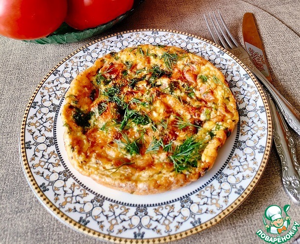 Когда одна сторона поджарится, делим на четыре части и переворачиваем аккуратненько ножиком каждую часть яичницы.