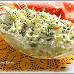 Перед употреблением можно перемешать. Ну, очень пикантный и очень вкусный освежающий салат!