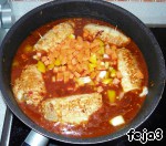 Рецепт «Мясные рулетики в томатном соусе с овощами»:
