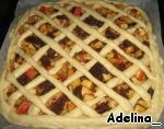 Тесто раскатать, но не тонко. Выложить на него начинку и поверх выложить решетку из теста или украсить, как подскажет фантазия. Дать ему постоять, чтобы он расстоялся, а потом.....