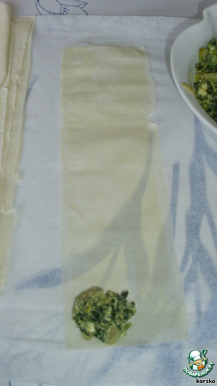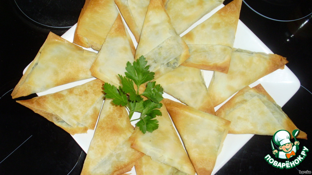Рецепт «Треугольнички по-гречески с брынзой и шпинатом»: