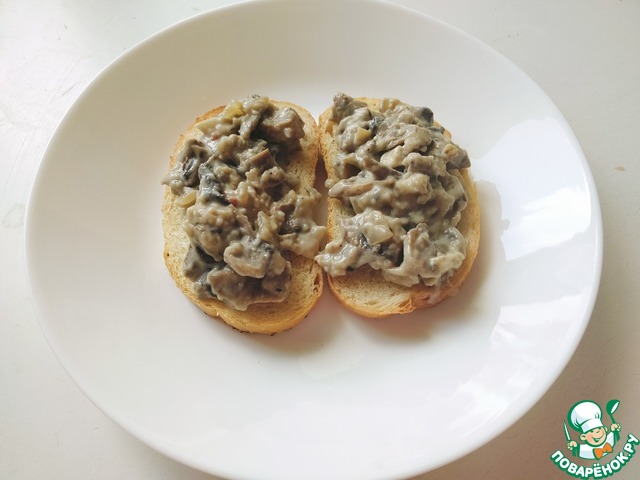 Бутерброды на жареном батоне с грибами. За фото спасибо поваренку yuvl.