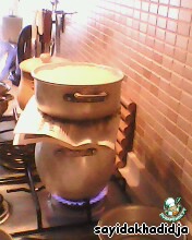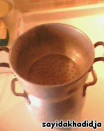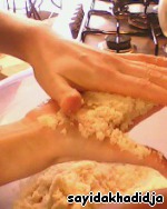 Вложить перетёртый кус-кус в... даже не знаю, как по-русски сказать... в общем, в верхнюю часть с дырочками, или по-арабски - кяс-кяса.