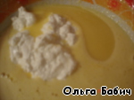 Добавить сметану и растопленное масло, хорошо перемешать,