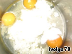 Перемешиваем ложкой, чтоб не разбить зернышки творога.