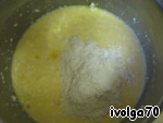 В наше тесто добавляем муку, разрыхлитель, соль на кончике ножа и ванилин.