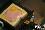 Немного обжариваем с другой стороны (будьте акуратнее, чтобы ваш сэндвич не подгорел).