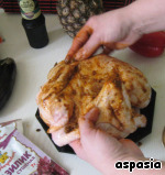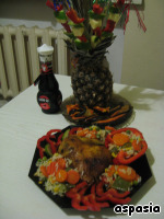 Курица запекается в духовке и подается гостям либо целиком, либо порционно с гарниром из риса цветного. Рецепт модернизировала для конкурса - блюдо получается ВСЕГДА вкусно, сочно и красиво. Гарниры разнообразны - на любой вкус, но для данного рецепта использовала только компоненты конкурса.