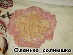 На влажном полотенце делаем лепешку из фарша (1,5 ст. л.),