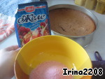 вылить на корж.Оно еще не схватится,но и уже не так быстро впитается.