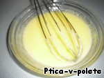 Яичные желтки отделить от белков и растереть с сахарным песком и тертой апельсиновой цедрой.