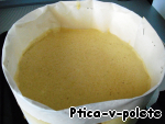 Выложить в выстланную бумагой для выпекания форму диаметром 26 см