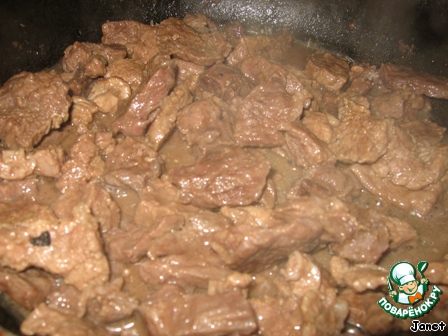 Говядину нарезать и сначала протушить под крышкой, затем обжарить. Если Вам повезло и Ваш муж - охотник, то можно взять мясо кабана или оленя, вкус только улучшится.
